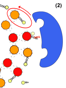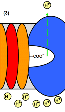 Dabei wird die deprotonierte Aminosäure ASP 61 (-COO-) der F0c- Untereinheit mit dem Proton (H+) aus dem Intermenbranraum "beladen" (-COOH).