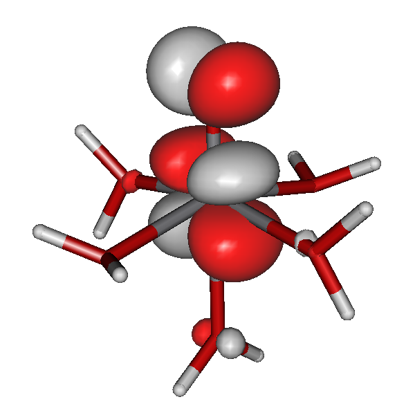 Die Stabilität von Amminkomplexen variiert sehr stark. Während die zweiwertigen Ionen von Cobalt, Nickel, Kupfer und Zink in wässriger Lösung Amminkomplexe bilden, werden sehr hohe Ammoniak-Konzentrationen im Fall von Eisen benötigt, und der Mangankomplex wurde bisher nur aus flüssigem Ammoniak kristallisiert [mii_6am_1996]. Wir fragen erst später danach, warum das so ist. Hier zuerst das Ergebnis einer quantenchemischen Rechnung am Hexaammineisen(II)-Kation mit einem reinen Dichtefunktional. Kristallstrukturanalysen zeigen ein oktaedrisches Komplexkation mit Fe-N-Abständen von 2.206(8) im Chlorid und 2.215(3) Å im Bromid [mii_6am_1996].