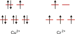 Um nebenbei koordinationschemische Grundregeln aufzugreifen, werden strukturell und chemisch nah verwandte Verbindungen betrachtet: Kupfer(II)- und Chrom(II)-acetat. Generell gilt, dass Kupfer(II)- und Chrom(II)-Verbindungen strukturell eng verwandt sind. Viele Salze sind isotyp. Ursache der Ähnlichkeit ist eine gemeinsame Besonderheit der d9- bzw. der high-spin-d4-Konfiguration. Beides sind bei oktaedrischer Koordination Jahn-Teller-Ionen, deren energetisch entartete Konfigurationen sich in der Besetzung des eg-Niveaus unterscheiden. Die Aufhebung der Degeneration bei diesen direkt auf die Liganden gerichteten Orbitale geht mit einer deutlichen Verzerrung des Koordinationsoktaeders einher, meist zu einer gestreckten quadratischen Bipyramide (Oh → D4h).