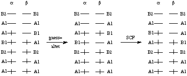 in the alpha spin orbitals, and the following line specifies the changes in beta spin