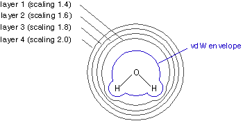 and the van der Waals radii are therefore modified through scaling factors. The smallest layer