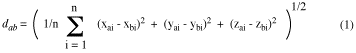 is achieved through minimization of the rms distance d between the two structures. The latter is