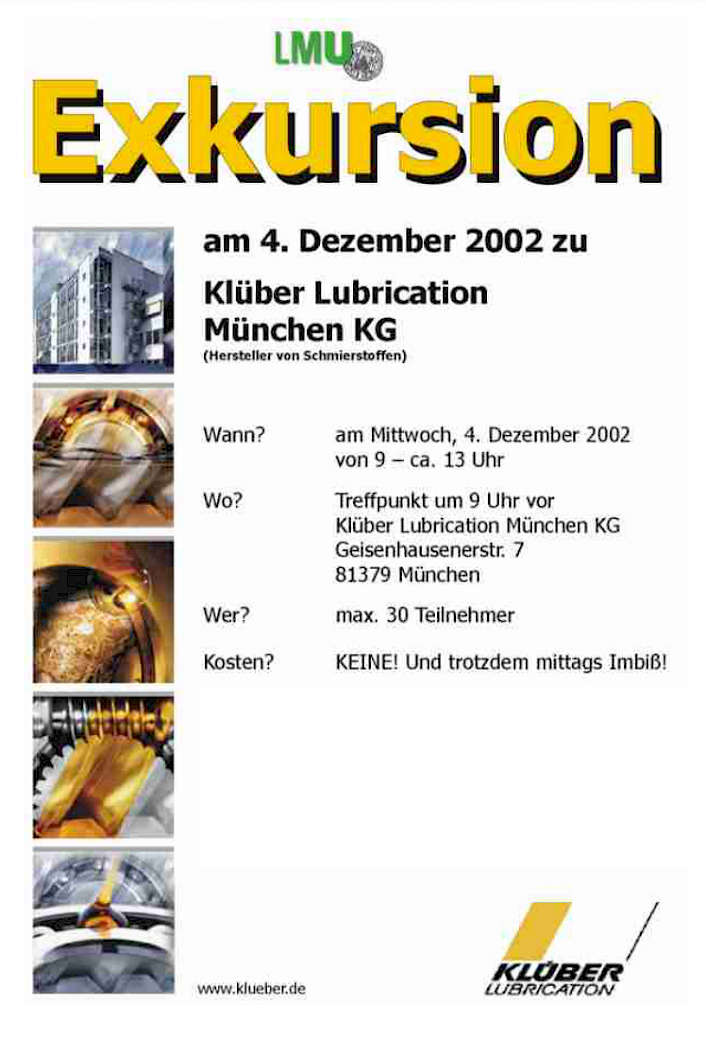 Warum müssen Fahrradlager nicht mehr nachgeschmiert werden? Exkursion zu Klüber Lubrication am 4. Dez. 2002