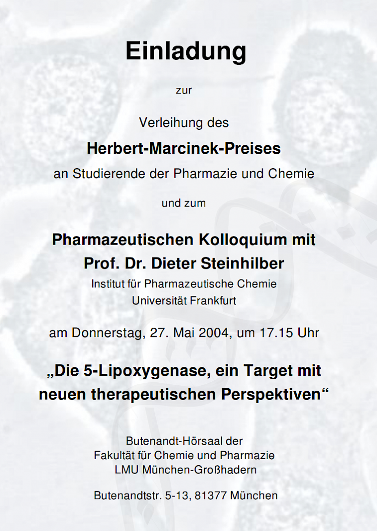 Verleihung des Herbert-Marcinek-Preises 2004 und Pharmazeutisches Kolloqium mit Prof. D. Steinhilber am 27. Mai 2004