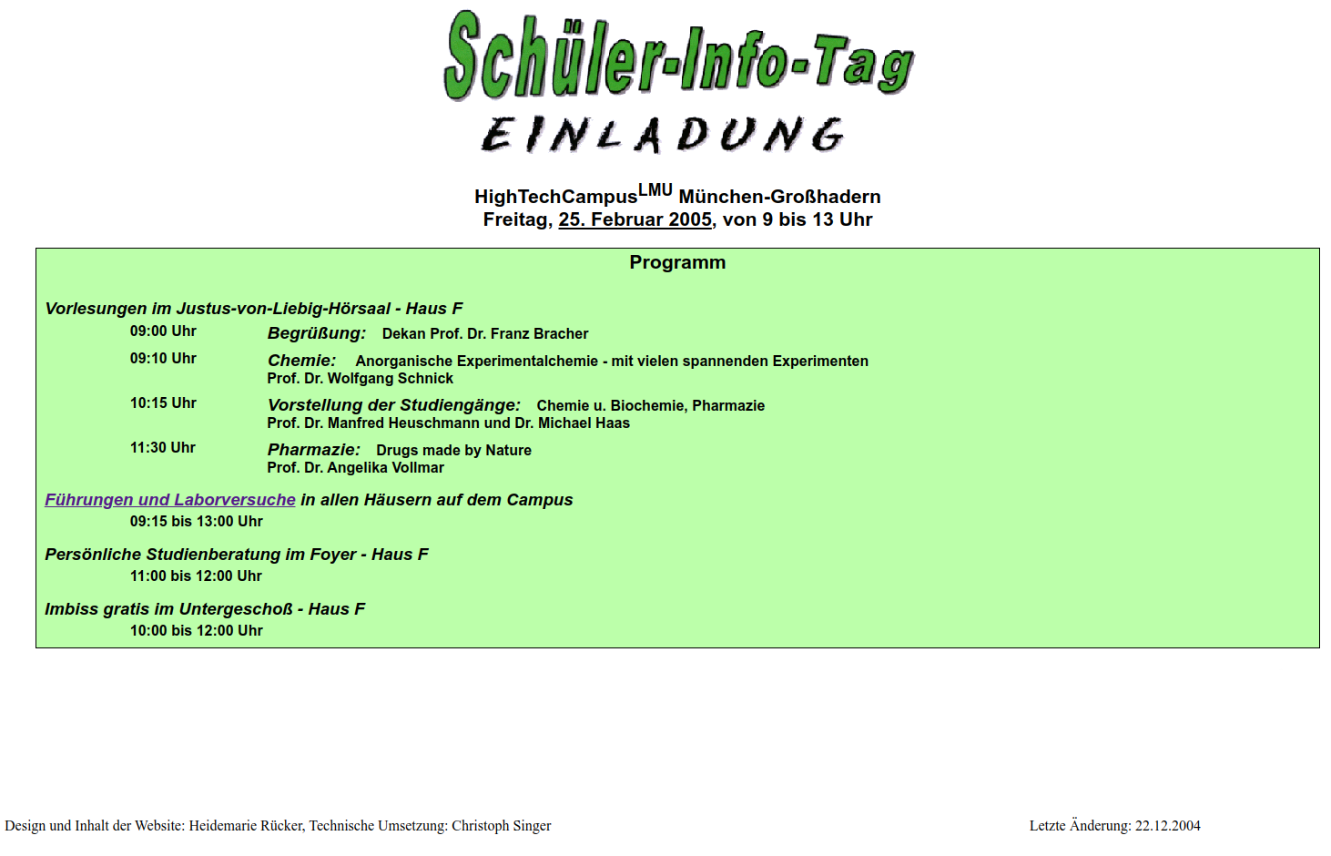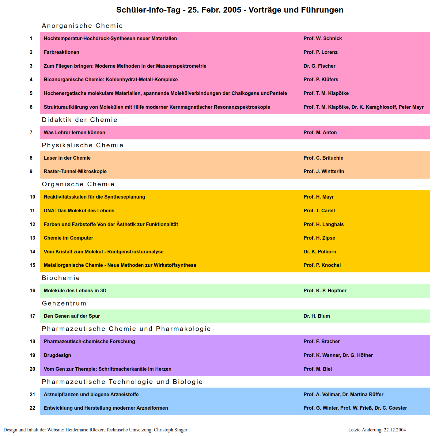 Schülerinfo-Tag 2005 der Fakultät für Chemie und Pharmazie am Freitag, 25. Februar 2005