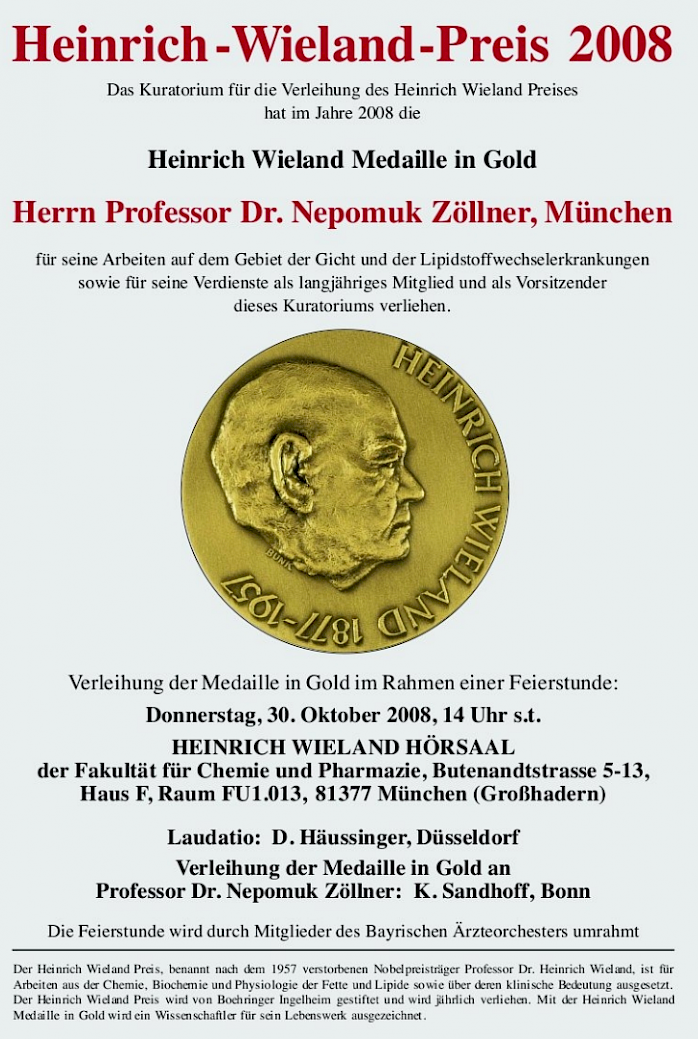 Verleihung des Heinrich-Wieland-Preises und der Heinrich-Wieland-Medaille 2008
