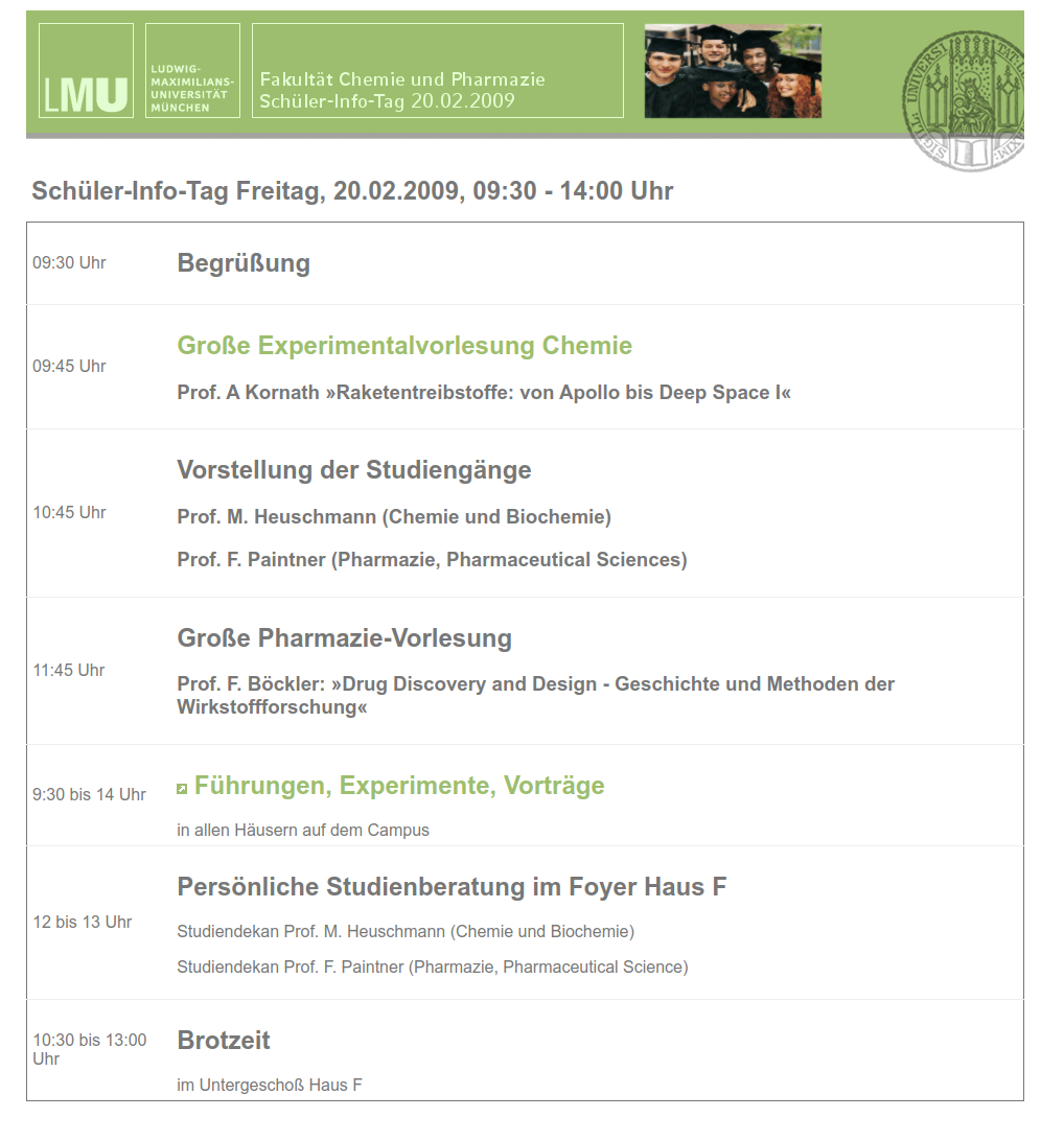 Schülerinfotag der Fakultät für Chemie und Pharmazie 2009