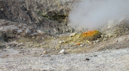 On the photo the largest fumarole (La Bocca Grande) in the Solfatara crater is shown, where the REE-dependent bacterium Methylacidiphilum fumariolicum SolV was first discovered. (Photo: Huub Op den Camp)