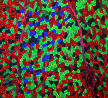 Die innere Uhr von Muskelzellen (hier eine Muskelfaser im Querschnitt) steuert ein ganzes Stoffwechselnetzwerk. (Foto: Helmholtz Zentrum München)