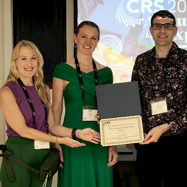 The „Controlled Release Society“ (CRS) held their Annual Meeting in Bologna, Italy, from July 8-12, and Prof. Olivia Merkel received not only one but two awards for her service to the society.
