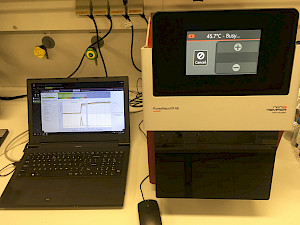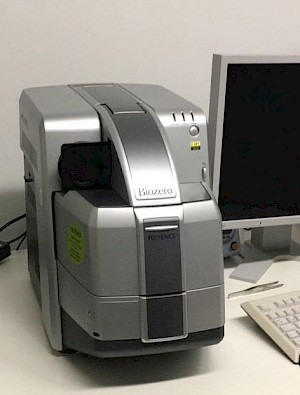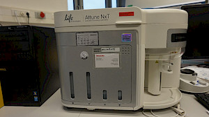 Attune NxT Flow Cytometer The main purpose is the analysis of cells. You can differentiate and image cells based upon their size and/or morphology, but also measure their fluorescence, which makes it possible to determine various characteristics such as the expression of certain receptors or genes after respective labelling. |