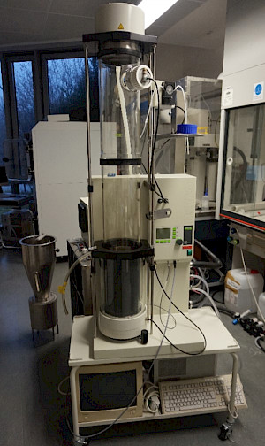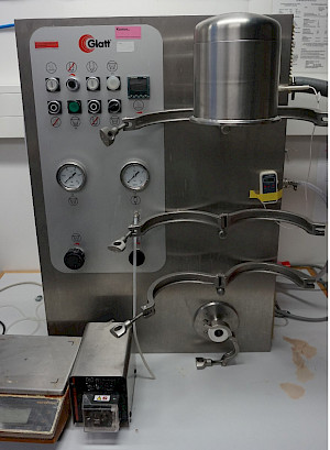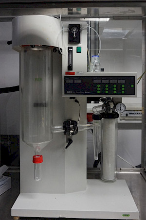 Nano Spray Dryer B-90 HP (Büchi) Controlled and safe production of small particles (0.2-5 µm) by spray drying. |