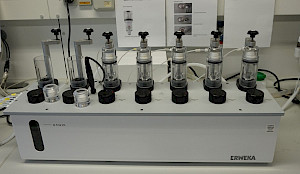 Headspace Karl- Fischer- Titrator (Analytik Jena): Detemination of chemically bounded and free water in materials (water range: 0.01- 100 mg).Key instrument to track the residual moisture in spray- dried or lyophilized formulations. |