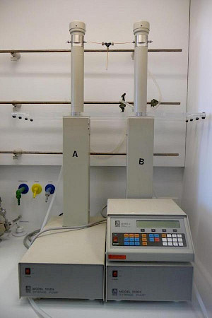 Dual-syringe-pump 100DX system (Teledyne Isco) Mixing of two fluids at high pressure and flow rate up to 50 ml/minute.Temperature controlled jacket and valve package for non-stop continuous flow. |