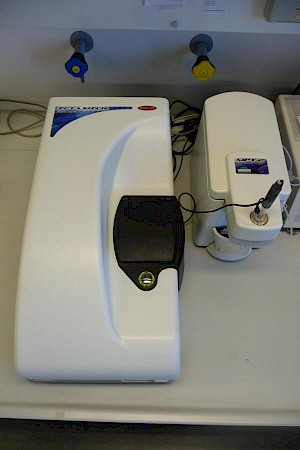 Zetasizer Nano ZS (Malvern Instruments) Particle size measurement by dynamic light scattering (nanometer to low micrometer range).Analysis of zeta potential and electrophoretic mobility using electrophoretic light scattering. |