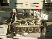 The part of “solid dosage forms” in pharmaceutics skills lab offers students possibility to work on powders and granules up to pilot scale. Granules will be produced in fluid bed or via wet granulation in batch sizes from 1 lb up to 20 lbs. Several mixers and granulators are operated by students, e.g. the Diosna Mixer-Granulator, an Erweka Planetary Stirrer or the Hybridizer system. Excipients can be milled in ball mills or in a high speed rotor mill. The complete granule or powder mixture can be pressed in one of our excentric presses or in one of our rotary presses. For process monitoring presses data can be recorded, so that students can optimize their formulation or pressing process. After pressing students make Pharmacopoeia test with their tablets. The second part of solid dosage forms is coating. Students are allowed to make esculants with peanuts or almonds coated with chocolate. Besides that, there is driacoater and coating pan waiting for students to coat tablets and analyze them afterwards. |