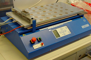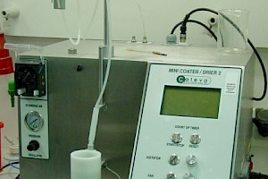 During their time in the module “disperse dosage forms” our students develop spray drying processes, perform freeze-drying and characterize the final products by differential scanning calorimetry (DSC) or light microscopy. The residual moisture in the dried formulations is analysed by Karl-Fischer titration. DSC is further used to identify polymorphic changes in different lipid formulations changes upon temperature changes and shock freezing. In addition, the students learn to prepare liposomes and nanoparticles and characterize them by dynamic light scattering (DLS). Rheological properties of different liquid and semiliquid formulations are characterized by a cone-plate viscosimeter or a Texture Analyzer. An aerosol filling system offers the unique possibility to prepare deodorant sprays or foams and thereby learn more about different types of aerosol filling. Aerosols are further characterized using a cascade liquid impactor. The impact of light and primary packaging material on the photostability of drug substances is another task in this lab. |