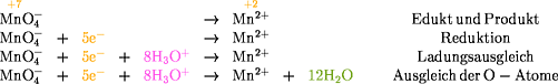 MnO4-: Sauerstoff hat die Oxidationszahl -2 und Mangan